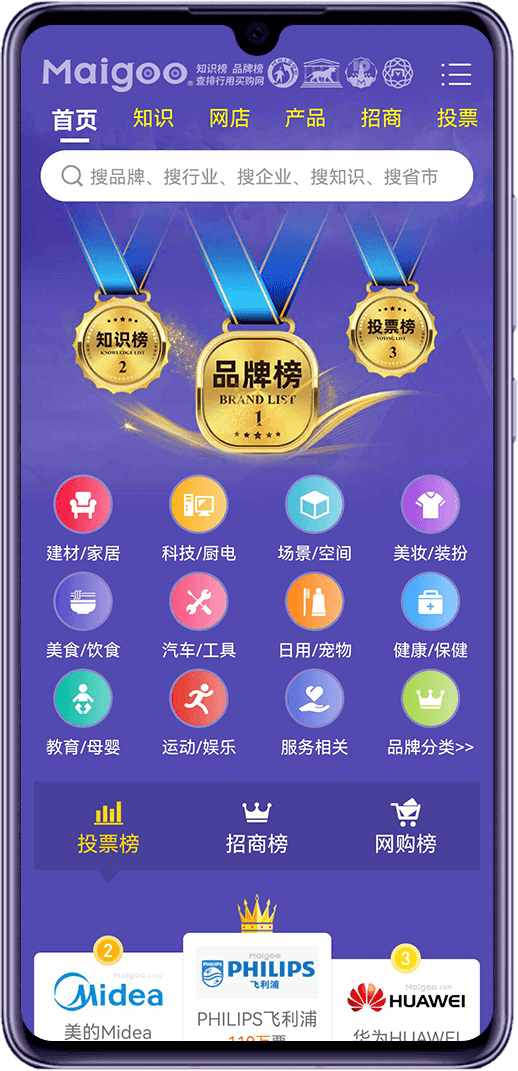 品牌投票、品牌招商、品牌網(wǎng)店、品牌人物、家居裝修建材...查詢品牌、知識、十大、之最、各種排行榜的軟件!